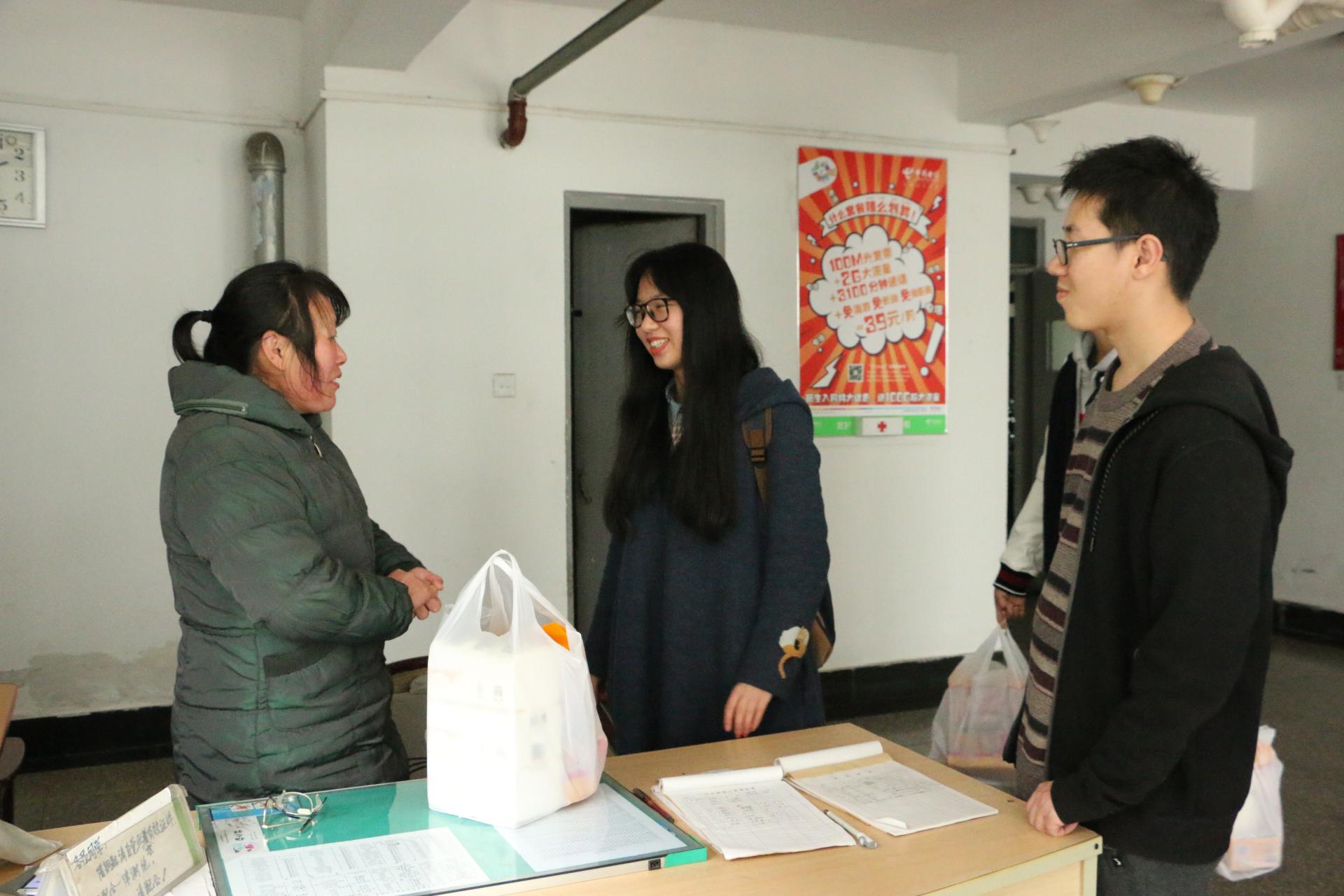 的入党积极分子组成了学雷锋行动小组,在成蹊苑宿舍慰问了宿管叔叔、阿姨,以实际行动践行雷锋精神。