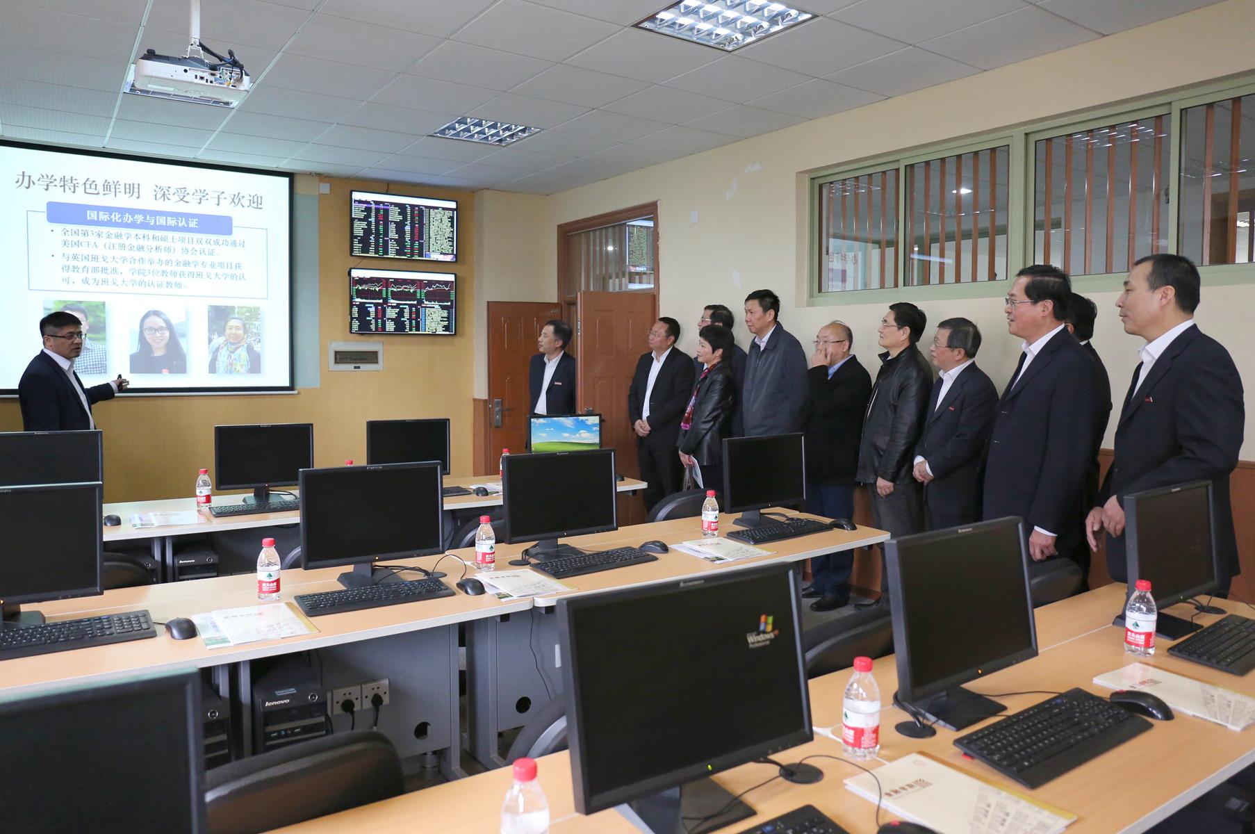 院长陈荣达教授《立足人才培养服务浙江经济》的成果汇报,了解了我校金融学科在互联网金融、地方政府债务风险评估与举债规模测算、钱塘江金融港湾规划编制等方面开展的研究情况。听取汇报后,他称赞道:“你们学院是有特色的,学科是一流的,研究做得非常扎实,研究内容与现实问题和政府改革工作联系非常密切,与浙江社会主义市场经济‘先走一步’有关,这些研究成果都是直接服务于社会主义市场经济,直接服务于浙江‘五水共治’等工作。我对你们刮目相看。”