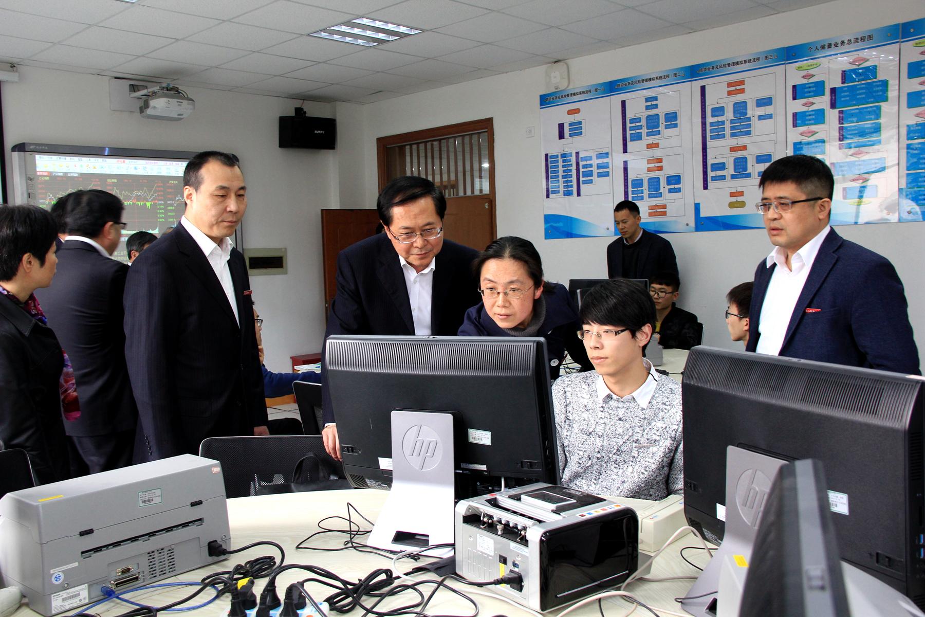 在参观金融工程与金融风险实验室、模拟银行实训基地时,车俊省长与师生亲切交谈,并对SF漫画