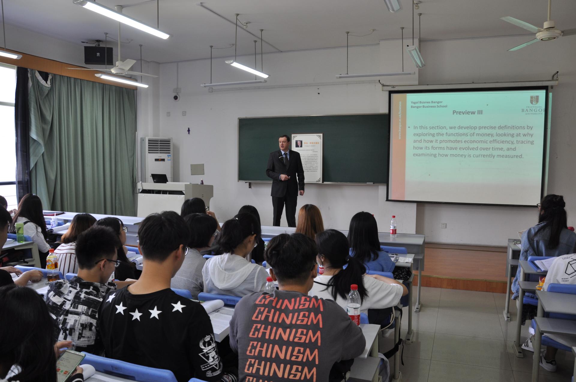 与班戈大学联合办学的中英项目合作班的学生授课,课程名称为《Financial Markets and Institutions》,授课内容主要包括金融体系及其构成,金融市场及其产品定价,金融机构内部管理原则以及金融监管发展趋势,中央银行和货币政策实施等。此次班戈大学商学院院长亲临教学第一线为我校SF漫画