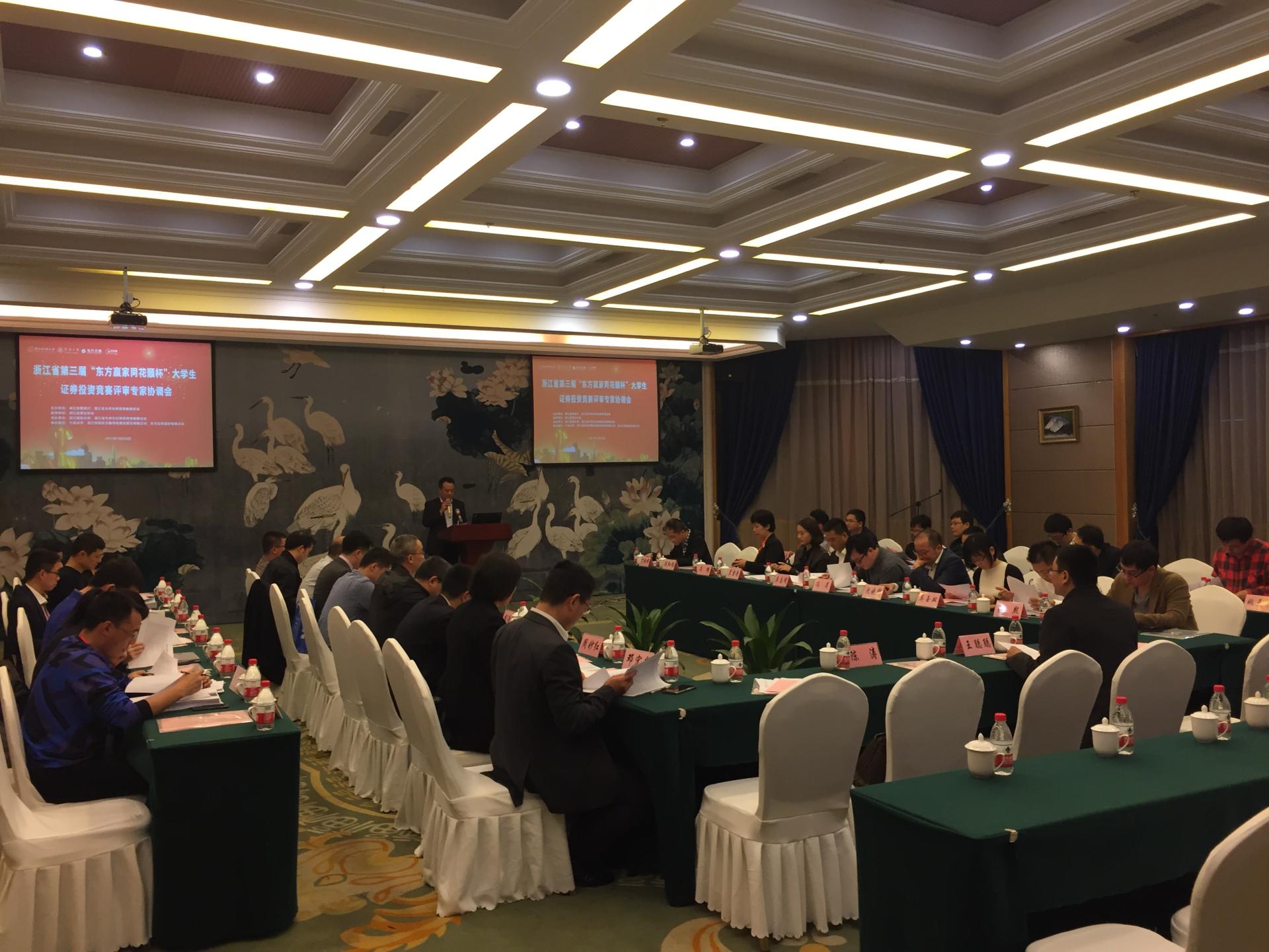 浙江省大学生证券投资竞赛旨在培养在校大学生证券投资实务能力和金融创新能力,促进校际金融学科交流,有效对接金融业实务部门,助力学生金融创业,打造未来投资精英团队。本次团队竞赛共有63所高校的618支队伍参赛 ,竞赛分策略本科、策略高职、量化交易、市场交易四个组别。各参赛团队除提交投资报告外,还需3个月时间的1000万模拟盘实测操作,每份提交的投资报告和操作报告都交由三位业界专家盲审评分,有24家机构的70余位业界专家参加了报告评审。经过初赛、复赛、决赛实测等环节后共有160支团队的500多人参加决赛答辩,具体为策略本科组(60队)、策略高职组(20队)、量化交易组(40队)、市场交易组(40队),共分组为8个场地,每组5位业界专家,共有40位业界专家答辩评委。160支团队分别争夺41个一等奖、80个二等奖以及若干名三等奖。