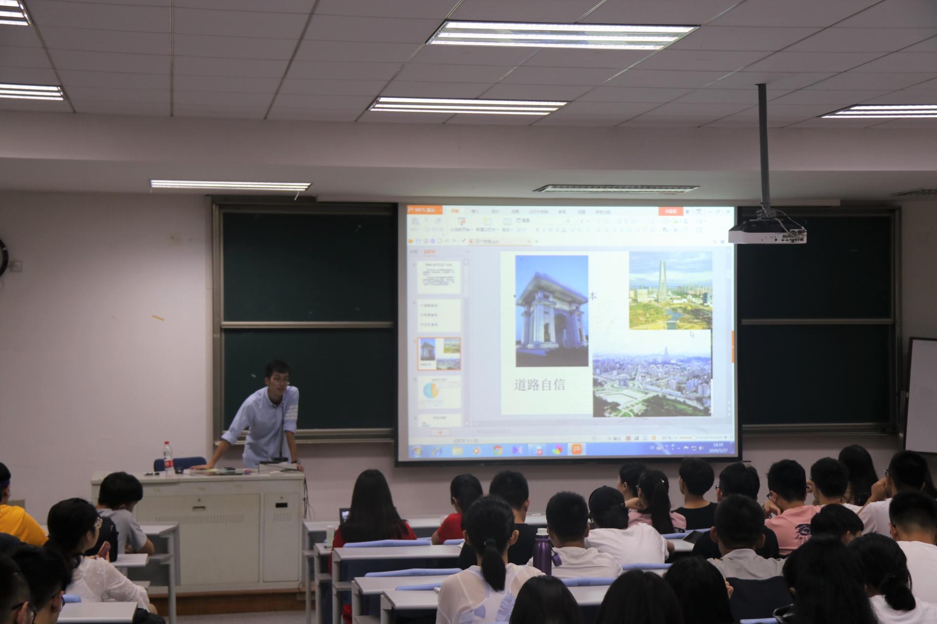 杨涵首先提到我国社会主义制度的优越性,自改革开放以来,我国正在以飞快的速度发展着,我们需要对国家充满自信。他还对我国的政党制度进行了解读,并用类比的方式,深入浅出地向同学们解释制度的原理。杨涵借论语中的一段话引出文化自信的主题,并指出中国拥有五千年的璀璨文明,值得我们所有人骄傲自豪。