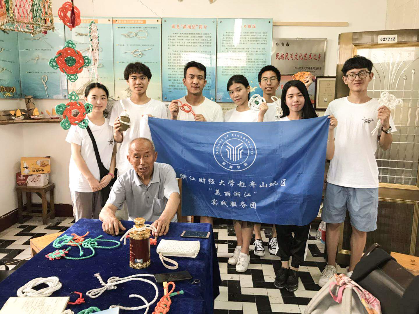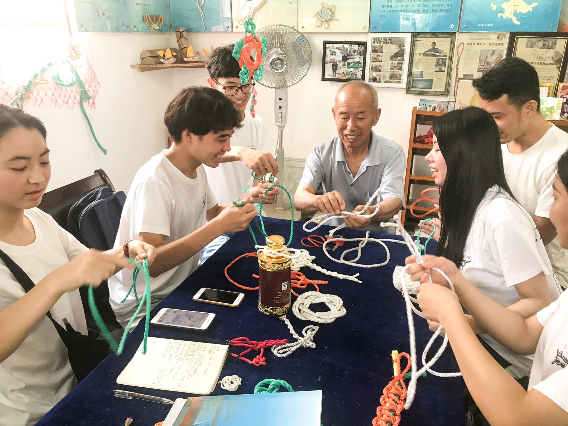 “美丽浙江”暑期社会实践服务团在聂亚平老师和沈耀杰老师的带领下来到舟山群岛,开展为期四天的实践活动,探寻渔绳结等渔文化在当地的发展现状以及未来发展态势。