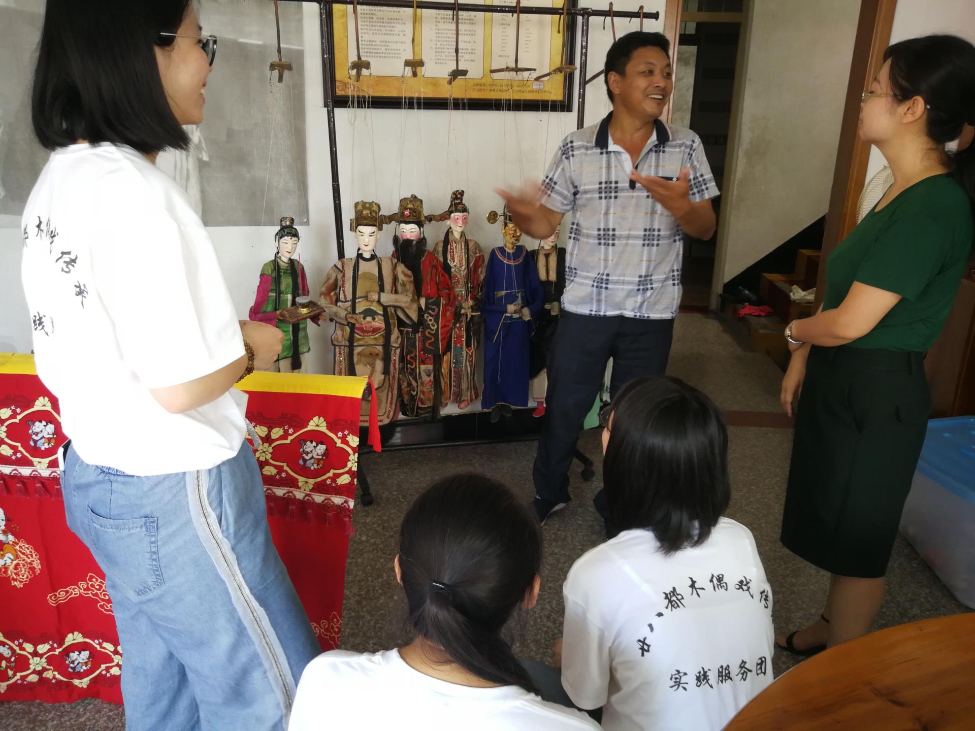 实践团首先在失却开展了调研,不仅拜访了木偶戏传承人金宗怀先生及其妻子,亲临现场感受木偶戏的魅力,还通过探访博物馆、发放调查问卷等形式,了解到了木偶戏所面临的现实问题。通过走访及调研,实践团了解到表演者缺乏经济收入、新型娱乐模式的冲击、群众对传统木偶戏了解甚少、年轻学徒的空缺等都成为木偶戏传承发展道路上的阻碍。