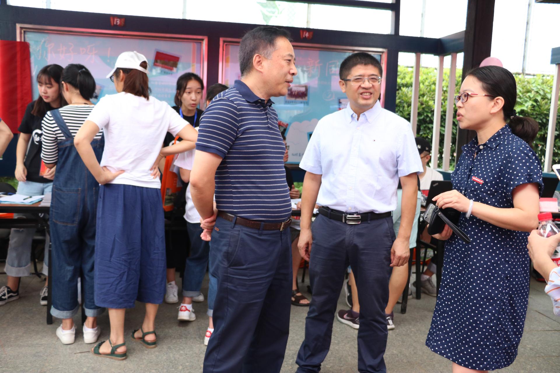 清早,便陆续有新生在家长的陪同下前来报到,在文化长廊的新生班导和学生会同学们也开始忙碌起来,报到登记、领取材料、寝室入住,在志愿者的引导下都显得井然有序。值得一提的是,在场的志愿者,不少是2018级新生。今年,学院还别出心裁地在报到点设置了一面 “金融人”照片框,安排了新媒体中心的摄影记者为新生拍摄报到照片,和父母、亲友一起定格这值得纪念的一刻。学院院长陈荣达、党委书记蔡国金、党委副书记叶秀、新生辅导员也来到迎新现场与新生及家长沟通交流。