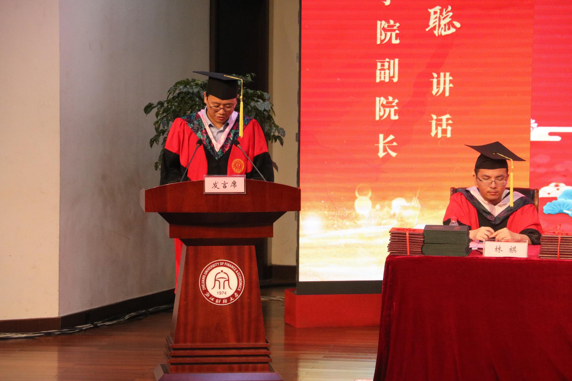 典礼在雄壮的国歌中开始。首先,院长陈荣达发表讲话对2019届毕业生们表示热烈的祝贺和衷心的祝愿,希望金融学子们能在未来的人生道路上,势如破竹,再创辉煌。