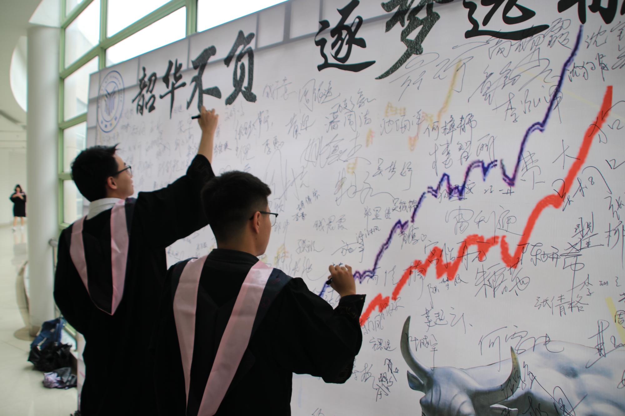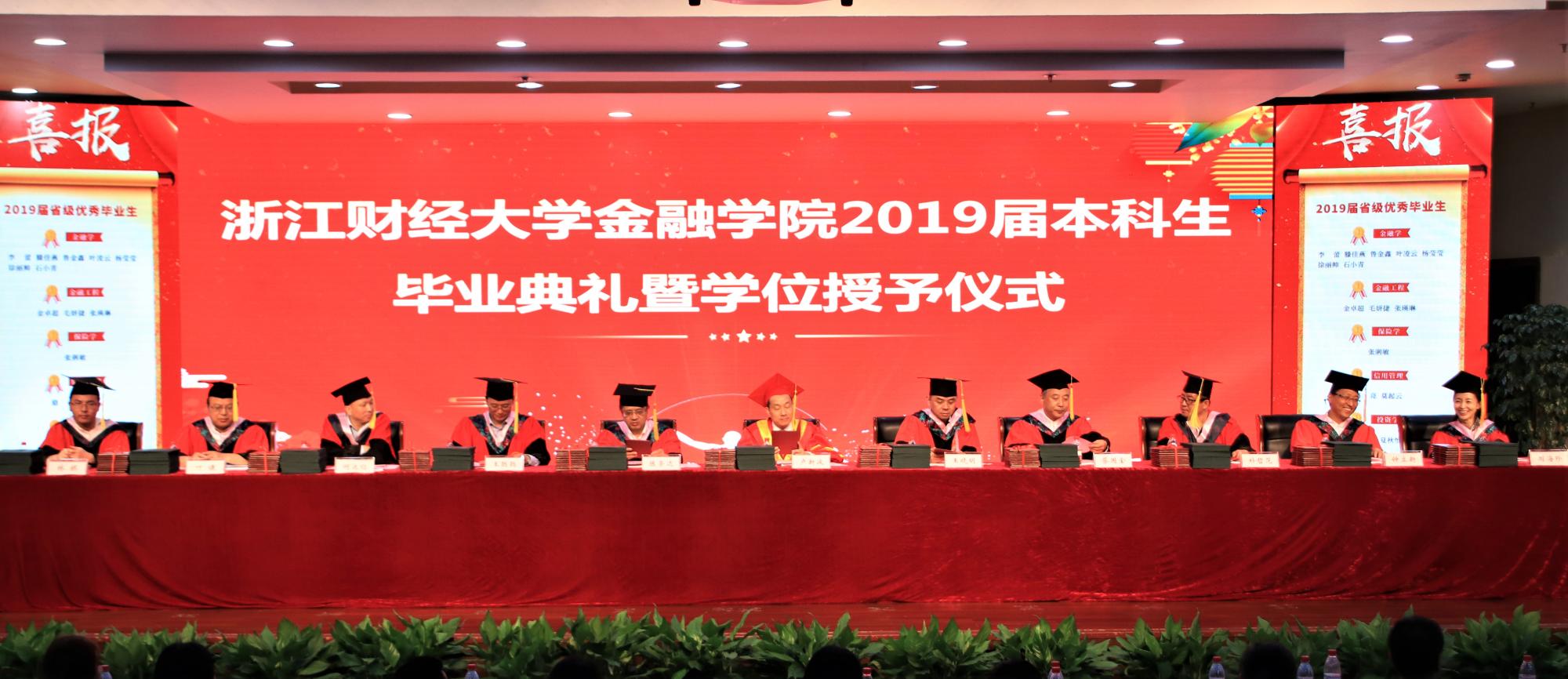 接着,省优秀毕业生、“明栋基金”获奖者上台领奖。朝气蓬勃的毕业生代表们向学院汇报自己大学四年的感悟与收获,并互赠礼物。在典礼的最后,2019届金融学子依次上台,完成拨穗礼,接过学位证书,并于恩师们合影留念。