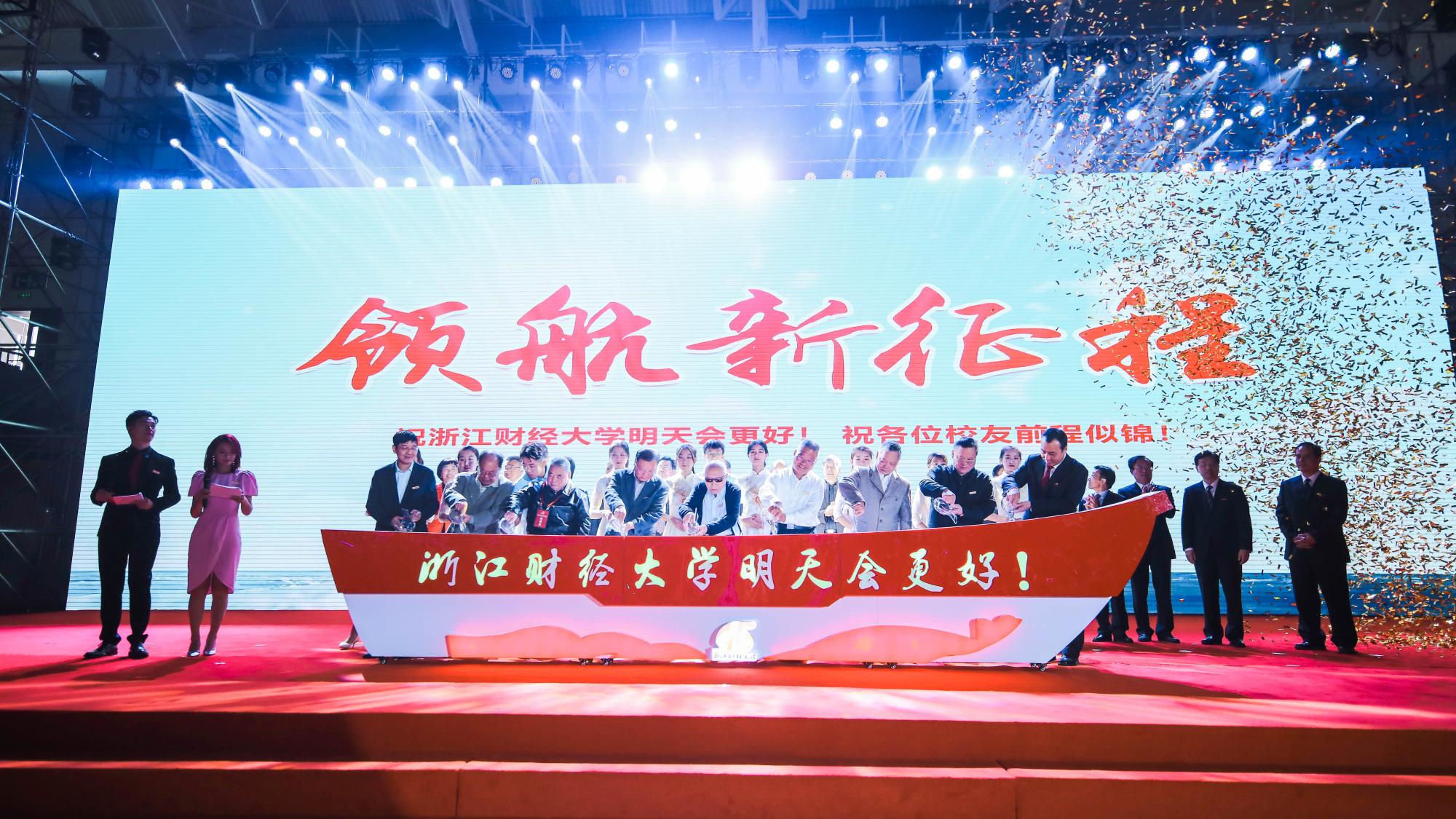 以“情聚浙财、追梦启新”为主题的汇土仪式将大会推向了高潮;全体师生代表合唱校歌《随你去远航》。
