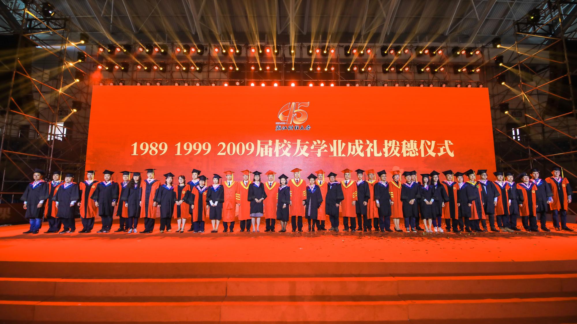 45周年校庆大会于西体育馆盛大召开,校党委书记李金昌的致辞开篇,抒发了对我校未来发展的美好愿景。大会上进行了引领“功勋奖”、拓荒“金牛奖”、“最美校友”等奖项的颁奖,对“浙财氏家”校友企业、“浙财世家”校友家庭进行授牌。