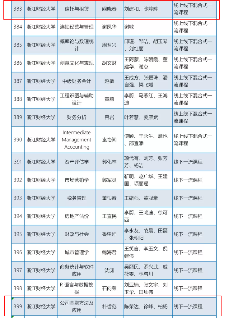 根据《浙江省教育厅办公室关于开展省级一流本科课程建设和国家级一流本科课程推荐认定工作的通知(浙教办函〔2019〕334号》,2019年我省本科高校省级线下一流课程、省级线上线下混合式一流课程和省级社会实践一流课程实行“名额到校、省厅备案”方式推荐认定。经各校申报、备案审核等,拟认定浙江大学《工程图学》等896门课程为2019年省级一流课程,其中SF漫画 朴哲范老师的《公司金融方法及应用》课程和阎晓春老师的《信托与租赁》课程入选。
