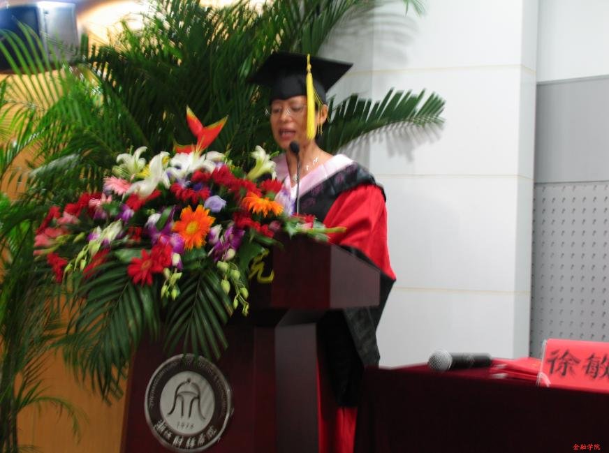党总支副书记陈伟老师主持。学院党总支书记吴忠希教授,院长虞群娥教授,副院长夏红芳教授,金融系主任徐敏教授、保险系主任叶晓凌教授以及部分学生家长等领导和嘉宾参加了此次毕业典礼。