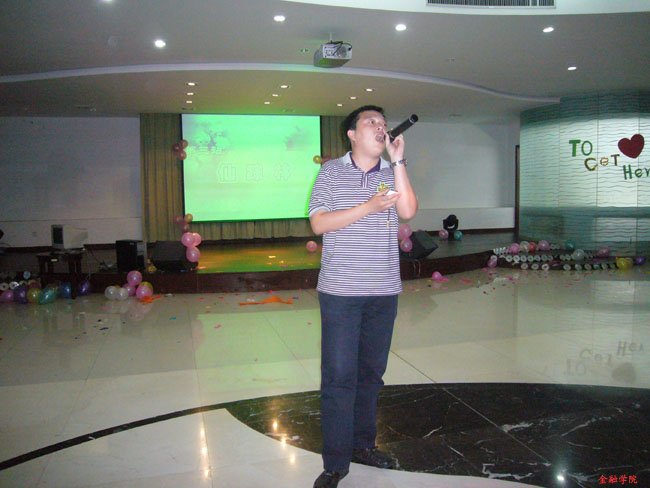 05公司金融以及05金融公司的同学们带来了准备已久的曲目,美妙的歌喉不禁让在场的所有的观众都陶醉其中,掌声此起彼伏。没有离别的悲伤,没有毕业的忧愁,有的是大学的美好回忆。在接下来“先声夺人”的游戏环节,毕业生们抛开羞涩,纷纷抢着话筒大声地唱出心中的歌,尽管有些离线,尽管有些生疏,但是所有人都能体会到那一份温馨,许多人四年里没有在大家面前唱过一首歌,而今夜一展歌喉!我们学院的分团委书记张虹老师倾情演唱的<<让我们荡起双桨》引起全场轰动,掌声此起彼伏,绵延不绝。