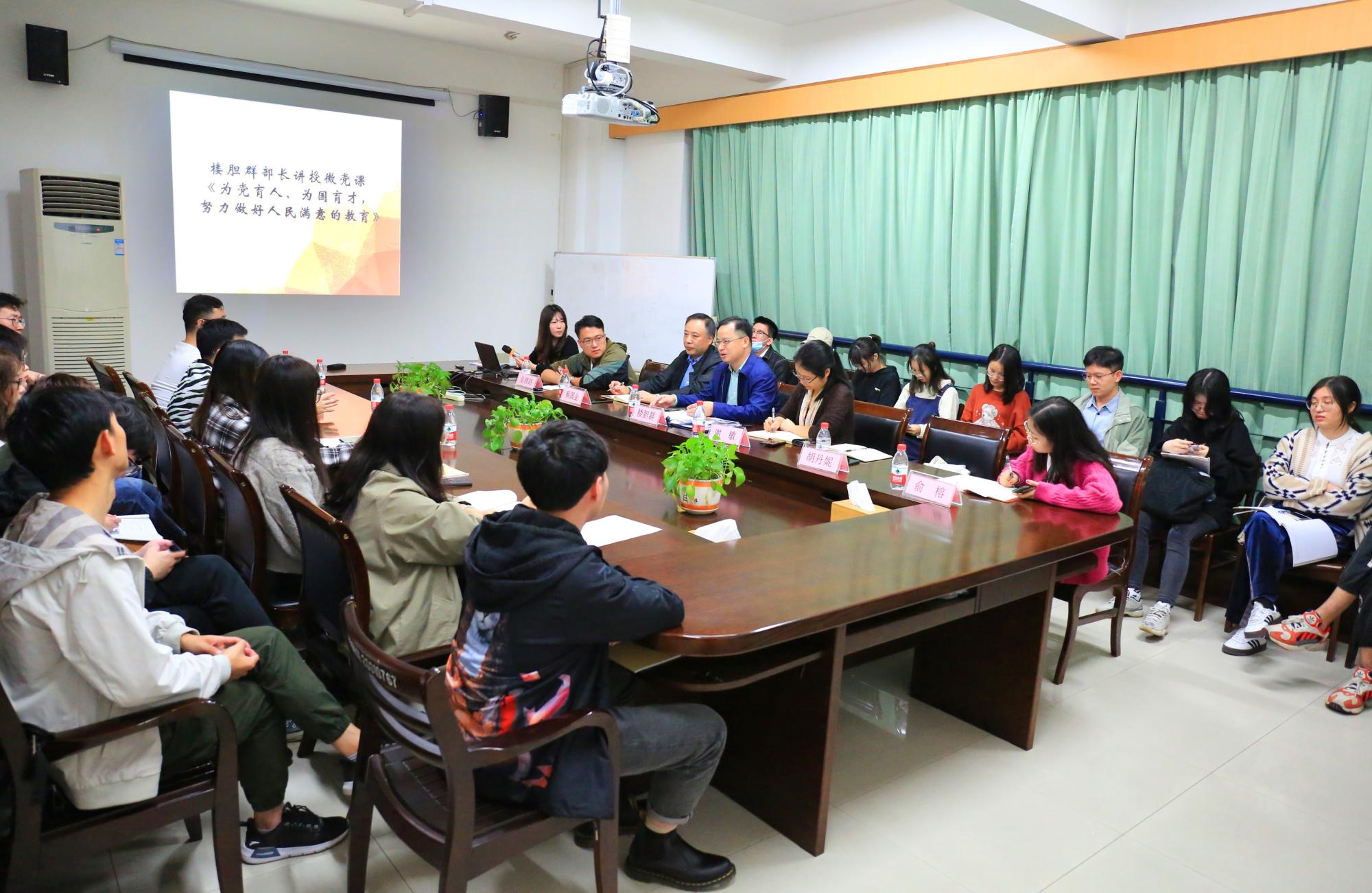 党委书记蔡国金、副书记谢敏、校党委宣传部新闻影音干事胡丹妮、综合宣传干事俞榕、金融系主任金骋路作为嘉宾列席,2019级金融学硕班全体学生参加,活动由研究生辅导员谢琳主持。