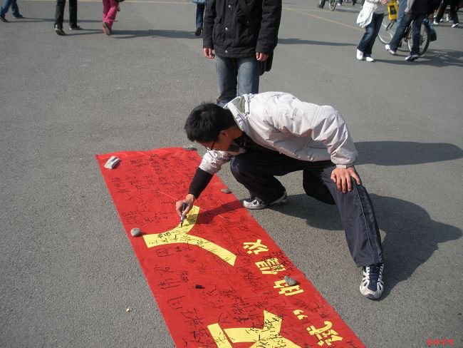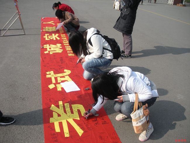 分团委、学生会向全校同学发起诚信考试的倡议,号召更多的人加入到诚信考试的行列中来。各种各样的宣传方式吸引了过往的同学们,他们纷纷驻足,在印有“诚实做人,诚信考试”字样的横幅上郑重地签下了自己的姓名,这不仅仅是一个签名,更是一种自信,一种承诺,一种誓言——“实事求是,信守诚诺,认真学习,诚实考试,手握诚信,把握未来”。在活动结束后,这条承载着同学们诚信考试承诺的横幅挂在了文化长廊上,时刻警醒着同学们。