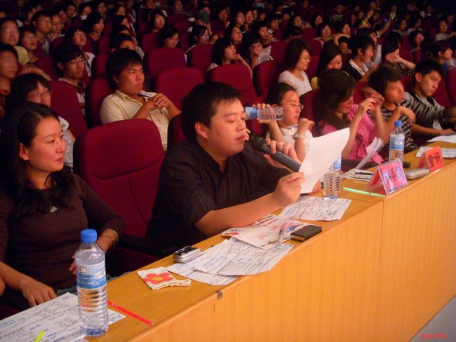 学办主任兼分团委书记张虹老师,政治辅导员陆颋浩、王文婷老师,校艺术团团长、校文艺部部长及07级校十佳冠军出席了本次晚会,并担任此次大赛的评委工作。各二级学院学生会代表等嘉宾也受邀观赏了晚会。
