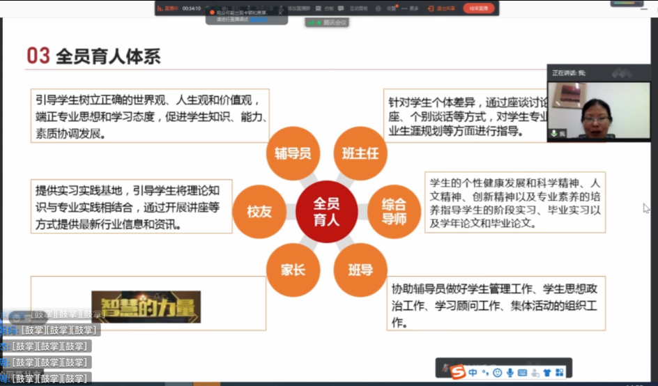 谢敏副书记介绍了学院学生管理工作。学院积极贯彻“全员育人”的教育理念,辅导员、班主任、综合导师、家长、班导、校友在学生健康成长中均发挥了重要作用。她还介绍了SF漫画