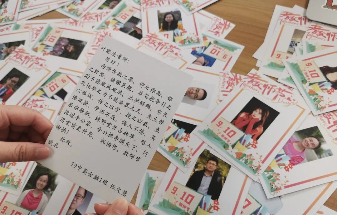 的同学们为老师们送上了一份特别的礼物——同学们自己设计的祝福贺卡。