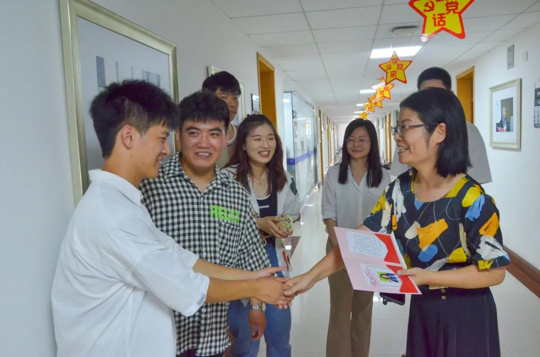 当同学们走进老师们的办公室时,他们都在埋头备课、工作,接过贺卡,老师们的笑容瞬间绽放在脸颊,发现祝福语背后是同学们设计的卡通人物形象跃然纸上更是喜出望外。他们对这份精美而特别的礼物表示非常喜欢和感动,并表示会更努力地为同学们付出。