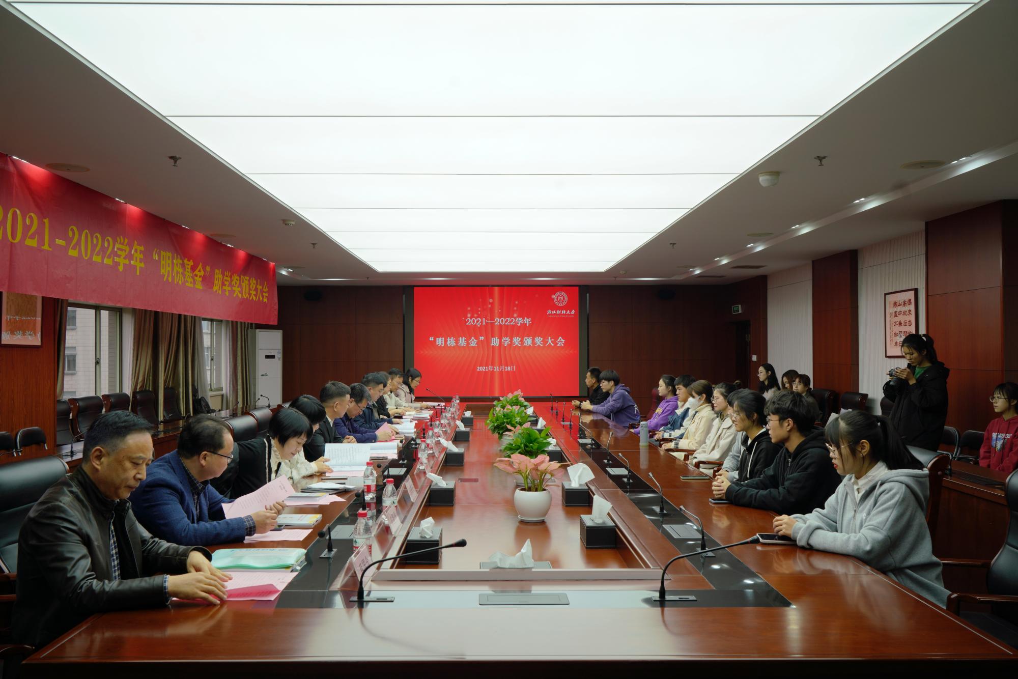 随后,“明栋基金”管理委员会秘书长陈锡芬向大家介绍了此次助学奖评审流程,校党委研工部部长陈星平、校党委学工部副部长汪风易分别宣读2021-2022年“明栋基金”助学奖获奖研究生和科生名单。“明栋基金”王晓明和孔繁岗校友亲自为获奖学生颁发奖杯和证书。