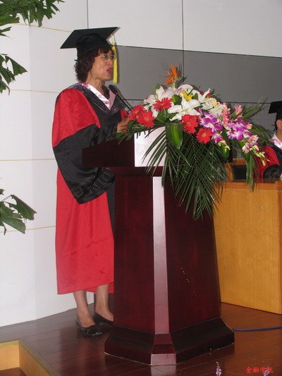 十点整,在庄严的国歌声中,毕业典礼正式开始。大会首先由虞群娥院长致辞。她充分肯定了08届毕业生所取得的成绩,并对他们圆满完成学业表示了热烈的祝贺。院党总支书记吴忠希教授也发言表达了对毕业生们的殷切希望和诚挚祝福。随后,教师代表徐敏教授发言,她鼓励学子们在今后的岗位上能够继续保持积极、好学的作风,争取美好的未来,为母校的明天增添光彩。