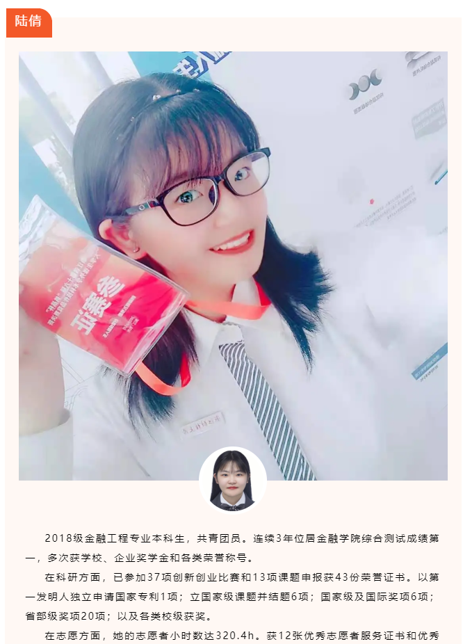 陆倩获得“十佳大学生”提名奖、