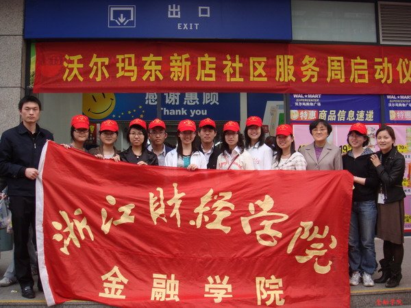 07金工和07保险班的同学们以志愿者的身份参加了由浙江省绿色环保志愿者协会与沃尔玛超市联合举行的大型环保袋派发活动。