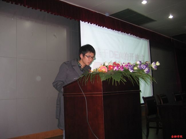 杨超同学在他的发言报告中论述了在当前金融危机的大背景下,建立一种开放式基金业绩评估模型的重要性。他结合我国开放式基金现有的情况,通过基金业绩评估的DEA模型、数据指标的确定、样本模型的阐述等多方面的深入分析,提出以数据包络分析(DEA)为基础建立一种开放式基金业绩评估模型,这种独特的见解得到了与会专家的一致认可与赞赏。