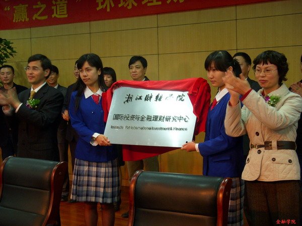 11月20日下午,浙江财经学院与杭州德瑞投资咨询有限公司所合作的国际投资金融理财研究中心揭牌仪式暨“赢之道”环球理财创业激励基金启动仪式在学术交流中心一号报告厅隆重举行。