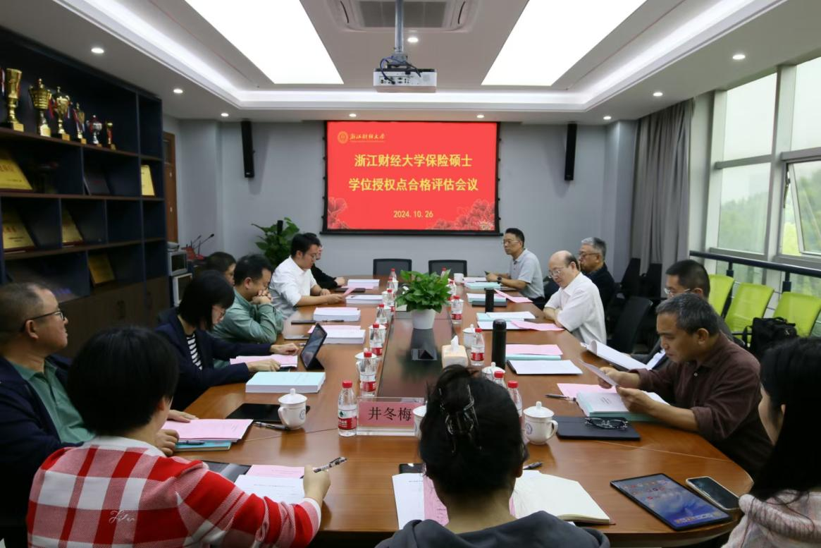 2024年10月26日下午,学院召开了保险专业硕士学位授权点合格评估评审会。专家组组长由国务院学科评议组应用经济学成员朱孟楠教授担任,专家组成员包括全国金融专业学位教育指导委员会委员蒋海教授、全国保险专业学位教育指导委员会委员刘波教授、国信证券经济研究所研究总监卢宗辉以及中国人民财产保险股份有限公司浙江分公司副总经理金李沈。学院党委书记黄文礼、副院长林祺、党委副书记陈思佳、保险专硕学位点负责人周海珍等参加了本次评审会。本次会议由学院副院长金骋路主持,特邀学术委员会主任陈荣达教授参加。