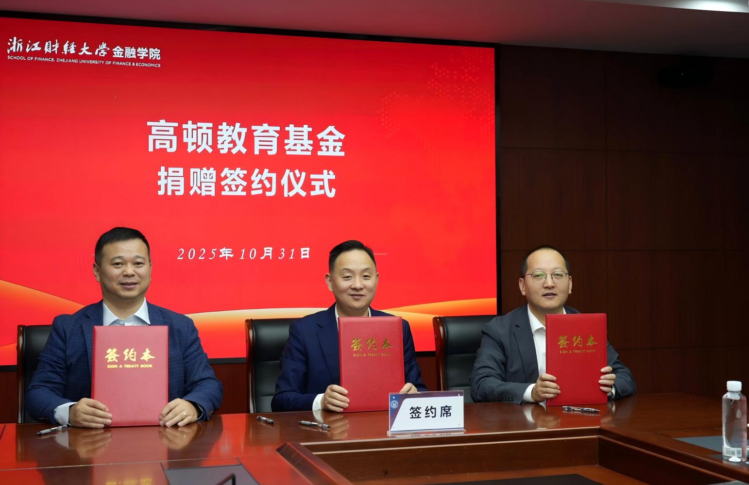 下沙校区行政楼412会议室举行。校党委副书记程爽、高顿集团副总裁兼校企事业部总经理舒畅、校企事业部华东区域总监郭太平等出席仪式。