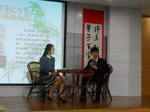 读“百本书”百家讲坛活动在学术四报拉开帷幕。本期主讲人为第二届百家讲坛第一名得主——来自09金融1班的张超伦同学。