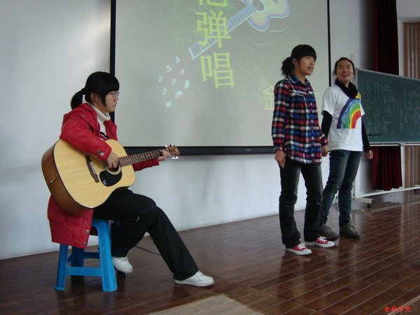 最精彩的部分莫过于同学们的表演。其中,金融2班的手语表演让台下的同学们啧啧称奇,金融3班的吉他伴唱别具一格,保险班的独舞更是引来了同学们的阵阵惊呼声和热烈鼓掌声。
