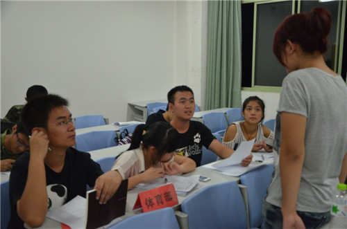 之后,招新工作正式开始。同学们虽然经过了一天艰苦的军训,但依旧活力充沛,对各社团和学生会充满了好奇与憧憬。学生会各部门和其他各个社团也热情地向同学们宣传与展示了各自的特色与优势,并耐心地对同学们的提问进行解答,以便帮助同学们更好地做出选择。同学们也根据自身特点,到自己所心仪的部门去面试。同学们紧张而又期待地等待面试,招新工作有条不紊地展开。各部门负责人也本着公平公正的原则,认真地对前来的同学进行多方面的考察,为自己部门选出最合适的人才。许多同学条理清晰的回答,沉着冷静的应对以及大方从容的态度给评委们留下来深刻的印象。