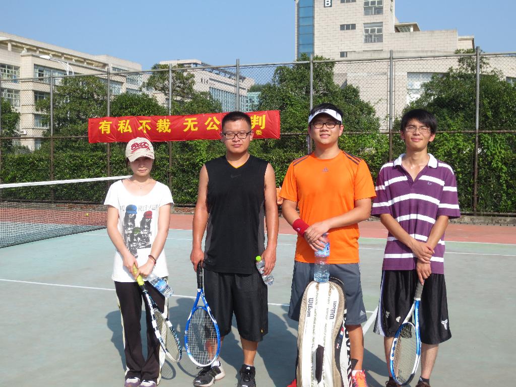 网球团体赛正式拉开了帷幕。本次比赛设有男子单打、男子双打、女子单打三个项目,徐扬、来佳炳、邵勇和陈杏妹四位同学代表SF漫画