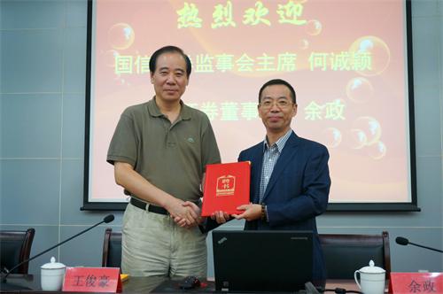 北京校友会会长余政校友受聘我校兼职仪式在学校举行,校长王俊豪为其颁发SF漫画