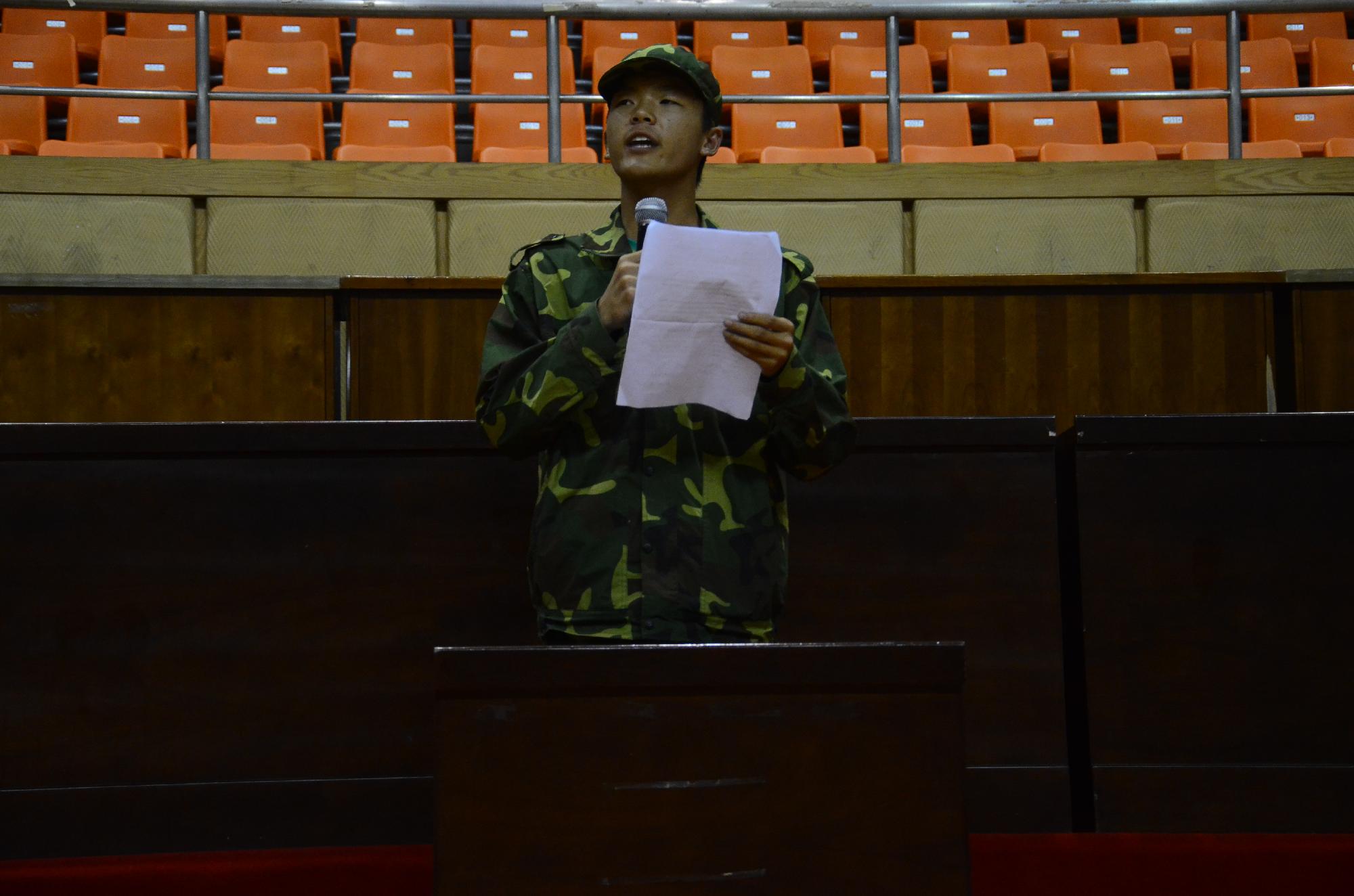 在这十七名同学中,二连四排的廖思杰同学凭借其发自肺腑的洪亮声音以及意义深刻的内容脱颖而出,勇夺第一。一连一排的陈焕烈同学和二连四排的胡思佳获得二等奖,其他八位同学分别获得三等奖和优胜奖。而颁奖典礼前的神秘节目:一连二排的同学个人独唱。歌颂了军中军人之间的浓浓情谊,让在场的教官们无不感动落泪。