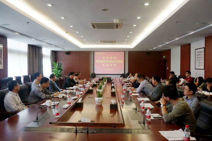 提出三点建议:要向国外优秀大学学习、要向国内优秀院校看齐、要注重创新突出特色。之后,在互动环节,他对师生代表提出的有关当前经济改革的热点问题进行了耐心而又深刻地解答。