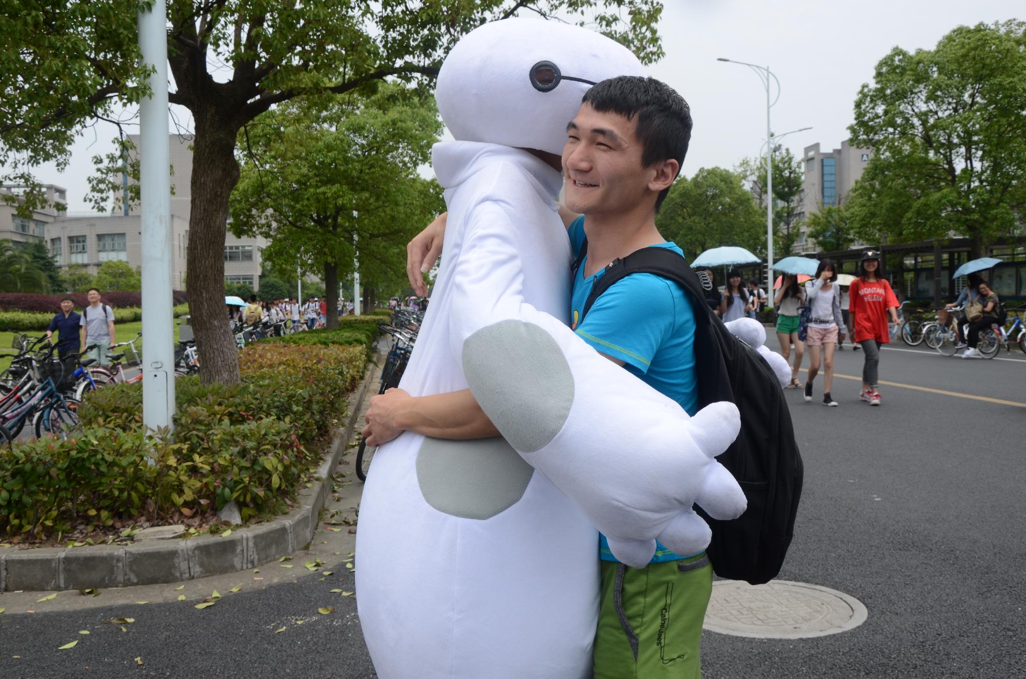本次活动分别再线上和线下进行,线上活动的参与者发送的拥抱主题照片将与线下拥抱所拍的照片一同评奖。在活动现场,为避免一些不必要的尴尬,近期倍受宠爱的电影角色大白担起了“爱的大使”的重任,吸引了不少路过的同学们,许多同学也放下了羞赧,纷纷与大白合影拥抱。每位参与活动的同学,都获得了由主办方准备的小礼物。