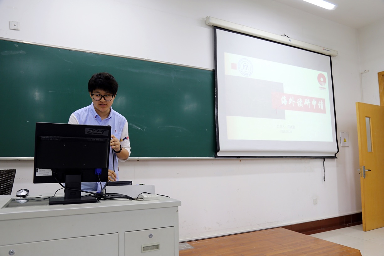 余益飞学长在讲座中介绍了申请海外读研前期的准备,并为同学们推荐了一些备考雅思、GMAT的书籍。学长建议想申请海外读研的同学们要提高GPA、多参加学术性比赛、把握住实习机会为自己的简历添上漂亮的一笔。