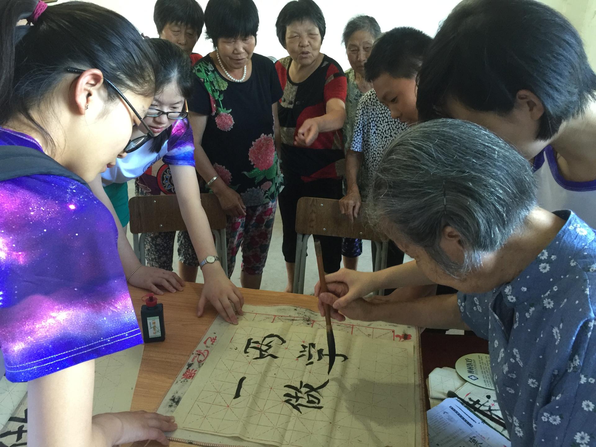 同学们开展中国共产党章程党规相关讲座,让党章党规深入人心。他们手把手教导老人写书法,并与老人们齐唱《歌唱祖国》,来表达心中对党浓浓的感谢之情!同学们为进一步深入基层群众,他们在周家村进行走访,替村里的老人们打扫卫生,给老人讲述党的丰功伟业,帮村里的孩子们戴上红领巾并为他们讲述党的故事。临走时,实践团的同学们给在田野中辛苦耕种的农民送水,送上一份清凉,向这些兢兢业业、艰苦奋斗的百姓表示感谢。