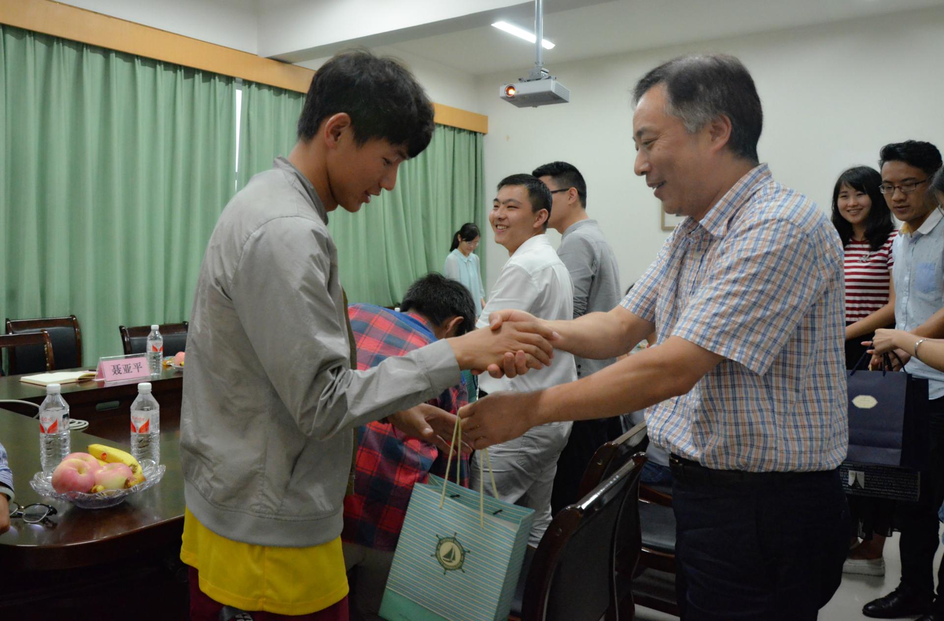 楼422室举行。院党委书记蔡国金、辅导员及新生代表们参加了此次活动。本次茶话会由学办主任吴轶韵主持。首先,新生们依次分享了自开学以来的种种感想,表达了自己对大学生活的期待和在学校里感受到的暖暖真情。随后,辅导员翟丽媛介绍相关政策,表示无论有什么困难,学校、老师都会尽力给予同学们最大的支持和帮助。最后,蔡书记发表讲话,在祝贺同学们进入财大、圆梦金秋的同时,还以老师、父辈的身份向新生寄予了三点希望:树立新的人生目标;脚踏实地、认真学习;不断积累、传递正能量,拓宽人生之路,此外,蔡书记还嘱咐同学们记得给家人送去节日的问候。接着,同学们畅所欲言,对学院的殷切关心表示感谢,表示会努力奋斗,拥抱自己充实的大学生活。