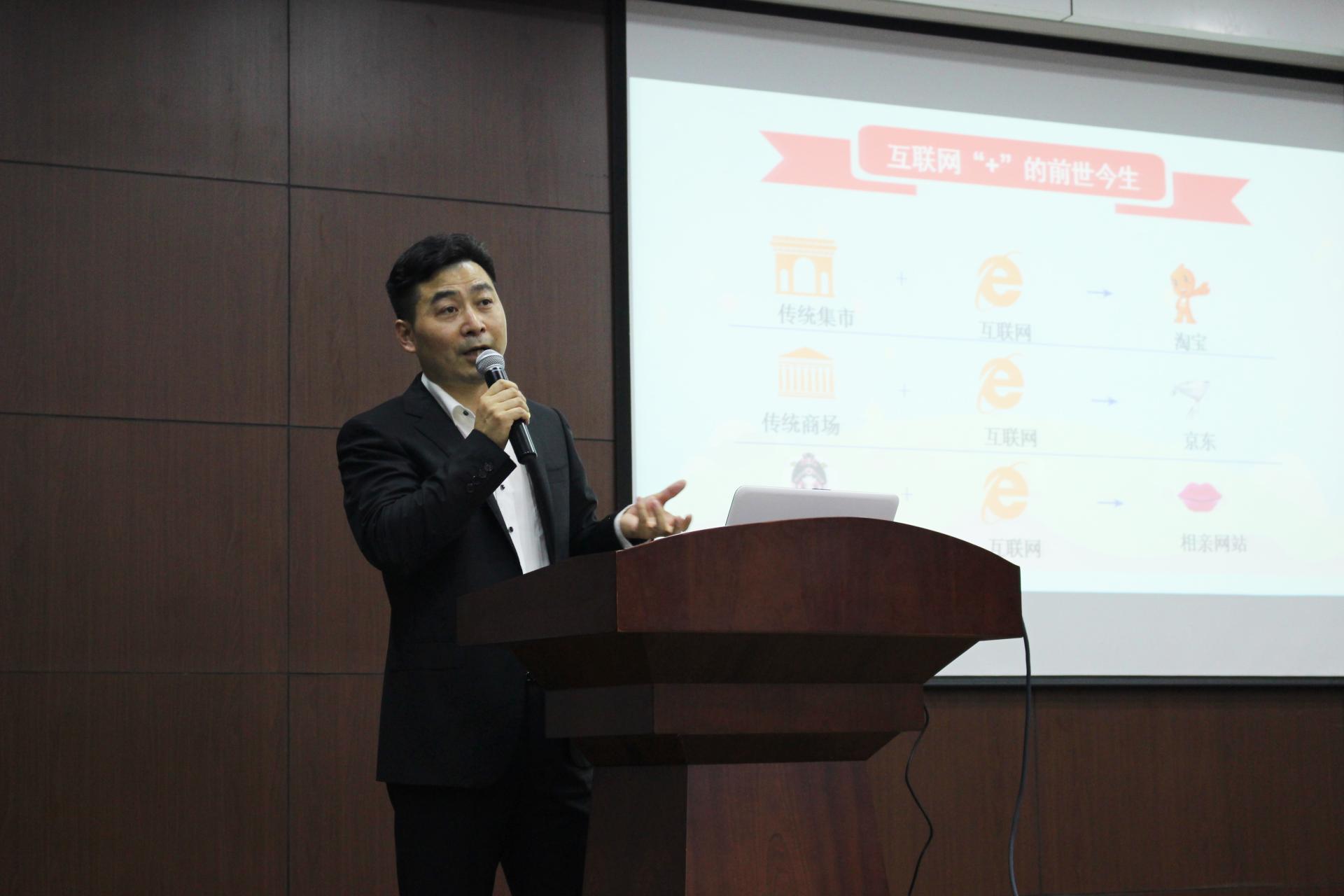 然后,周晓春先生为我们带来了精彩的演讲。他从互联网+引入,通过介绍互联网+的提出、发展、背景、本质以及其重要性,提出了眼光独到、思维创新、金融创新的建议。再提出了把握创业机会需要的注意点与条件,特别强调了创新的重要性,解释了有关互联网金融、农业众筹、供应链金融和互联网与实业结合的问题并罗列了创业存在的陷阱及注意事项。最后他呼吁我们,迎接改变,拥抱明天,演讲在热烈的掌声中画上了圆满的句号。