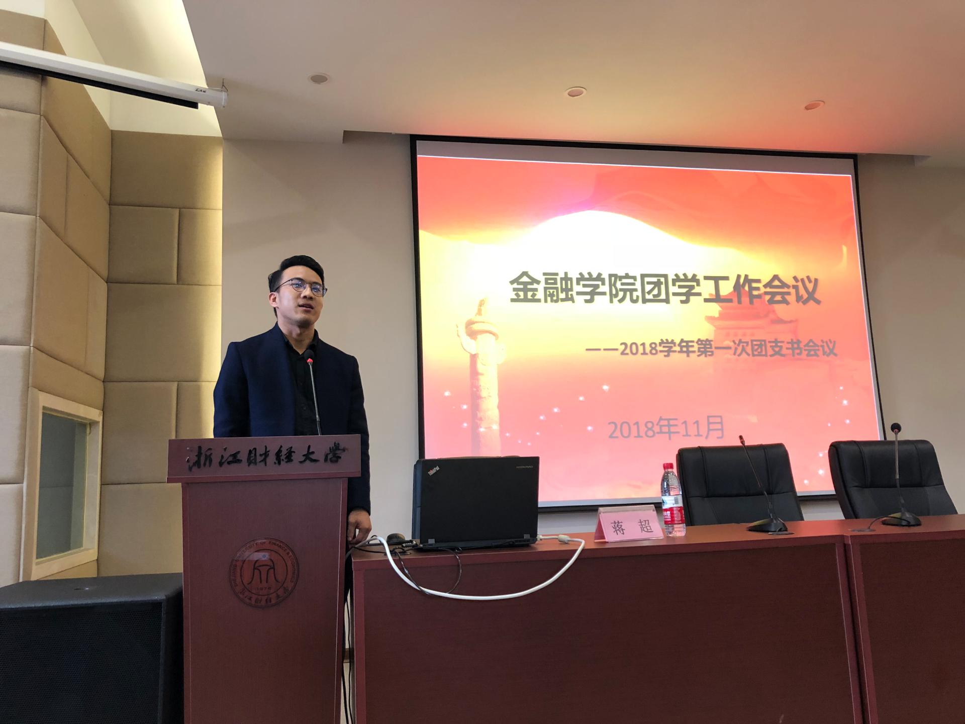 团学工作会议暨2018—2019学年第一次团支书例会在学院楼202报告厅举行,学院团委书记蒋超和辅导员聂亚平出席本次会议。