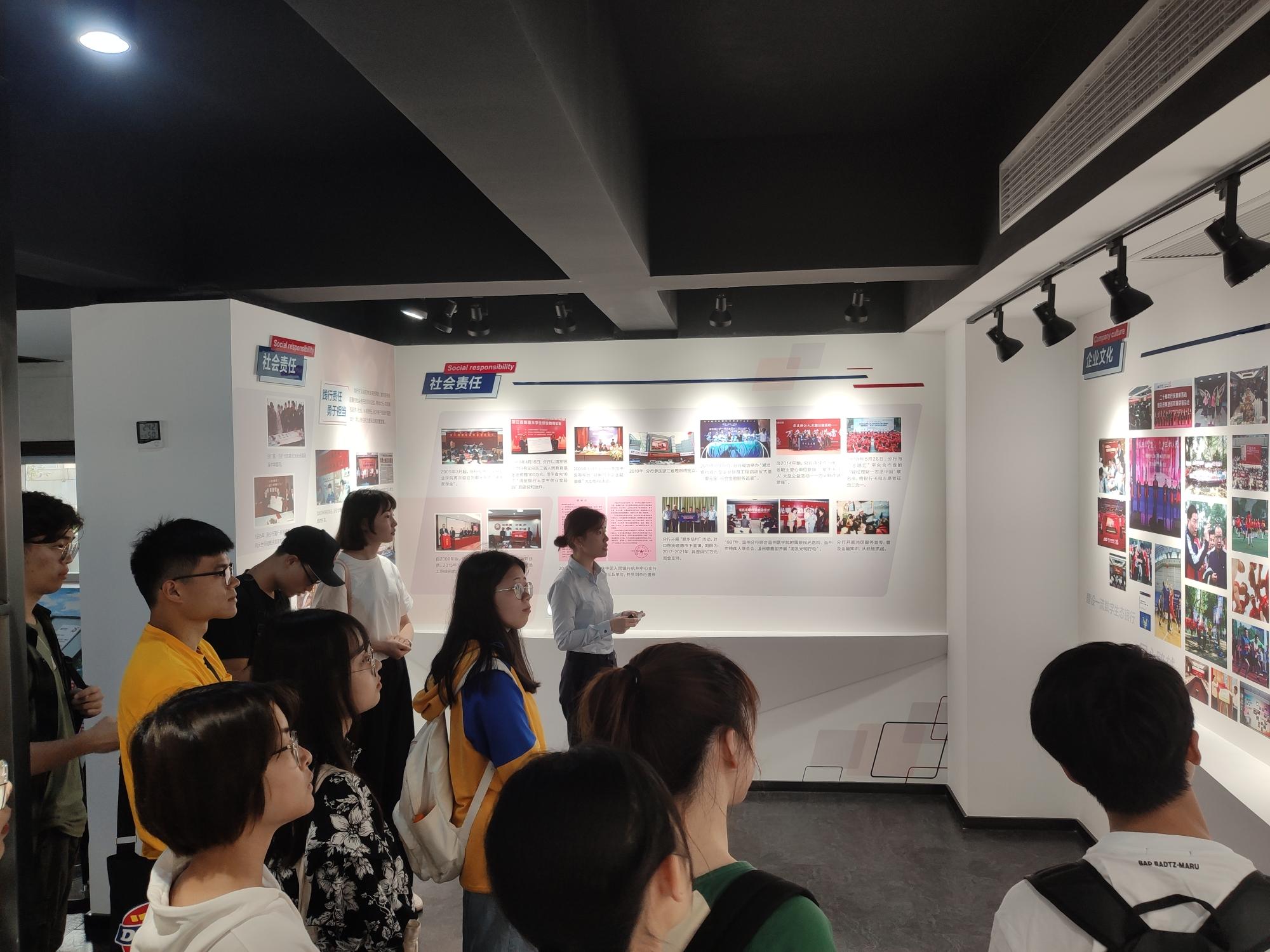 浦发银行理财经理刘安妮先带领同学们参观了浦发银行杭州分行行史馆,介绍了企业的发展历史、党建工作、社会责任及SF漫画等相关内容。