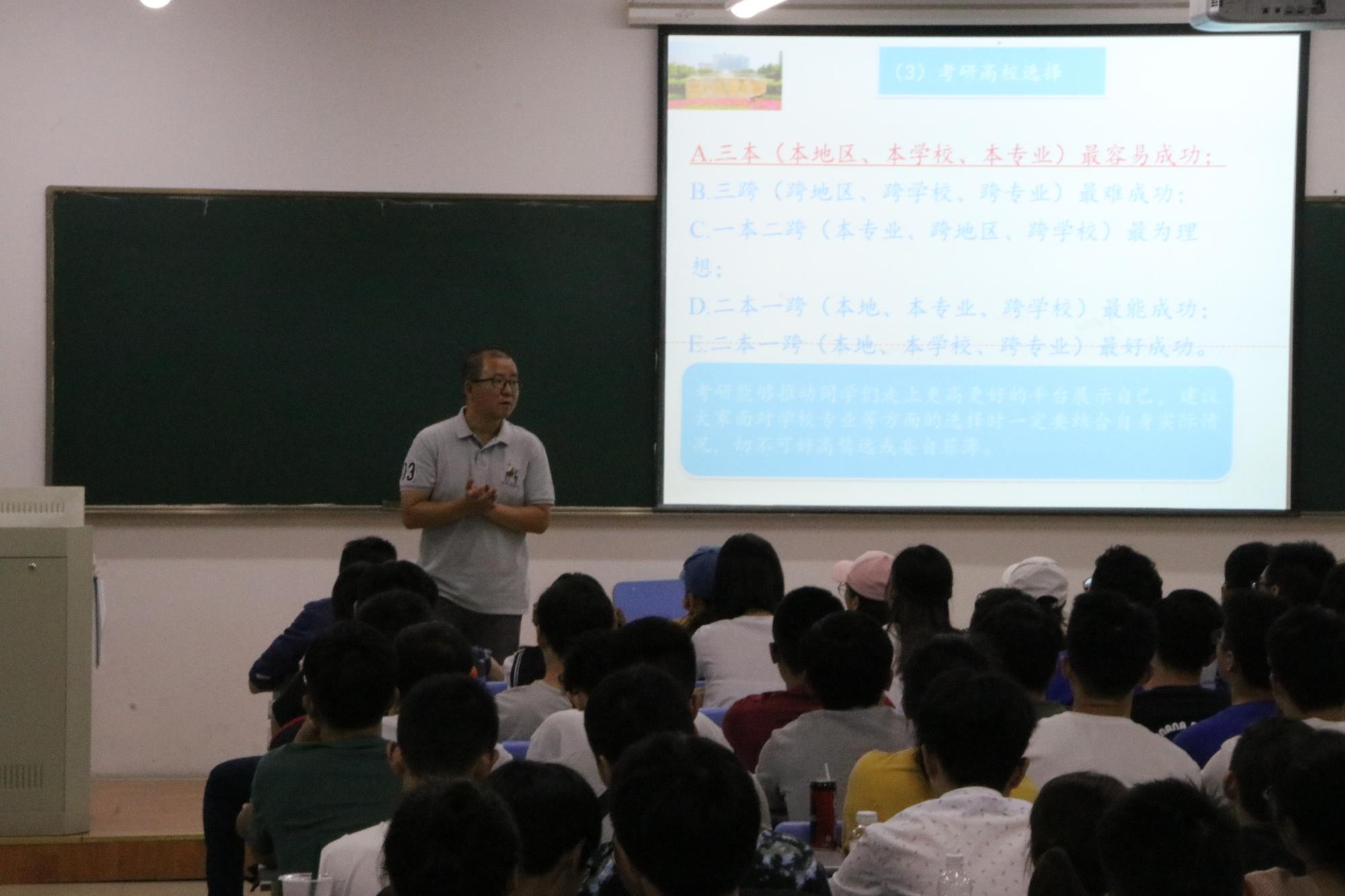 会上,朴院长围绕“2020年考研国家线影响因素”、“考研的必要性”、“考研的基本常识”等要点全方面、多角度解读了考研的政策和意义,鼓励学生要结合自己的兴趣和实力报考适合的学校与专业。张硕男博士结合自身的考研经历,向同学们传授了有关考研初试和复试的宝贵经验,勉励大家通过自己坚持不懈的努力,实现自己的目标。