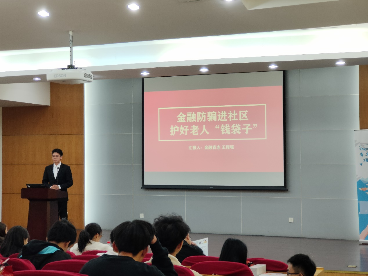 青志长期开展的志愿者服务项目,项目结合金融专业特色和志愿者精神,带领青年志愿者们走进社区,为老人们讲解防范金融诈骗知识。项目开展以来累计开展活动14次,直接受益人数317人,活动覆盖范围1286人,活动自开展以来受到了浙江新闻、新浪新闻、搜狐新闻等多家媒体的宣传报道。