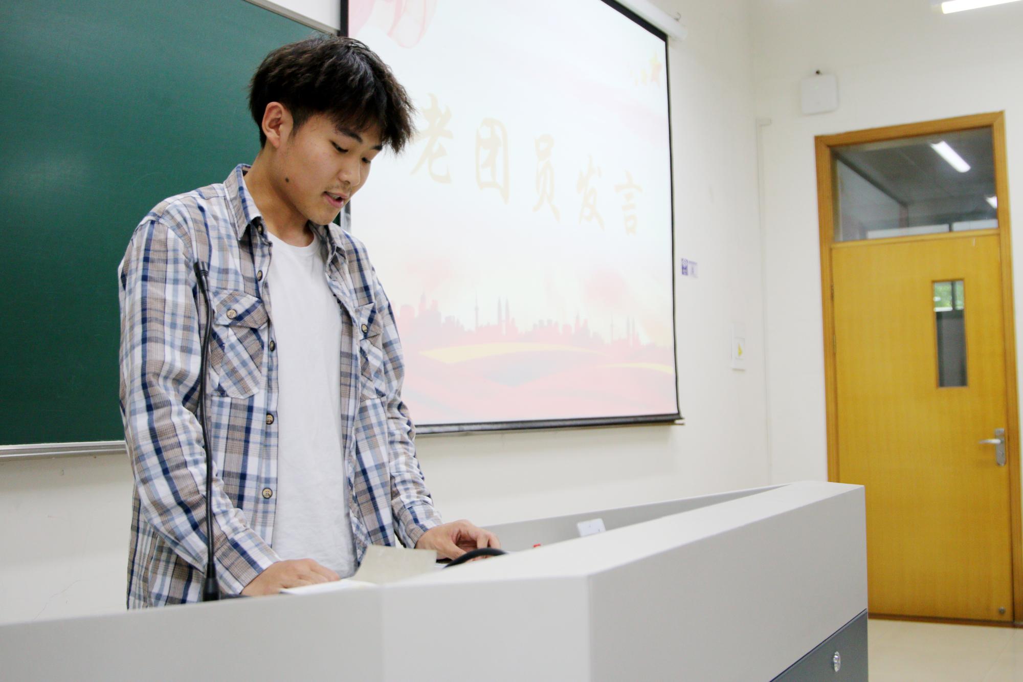 20金融10班李开元作为老团员代表发言,他向新团员们分享了自己的入团经历与团学工作感悟,鼓励所有新团员要时刻保持共青团员的优秀品质,在学习生活中奋勇争先、敢于担当,做好青年表率,用实际行动为团组织增光添彩。