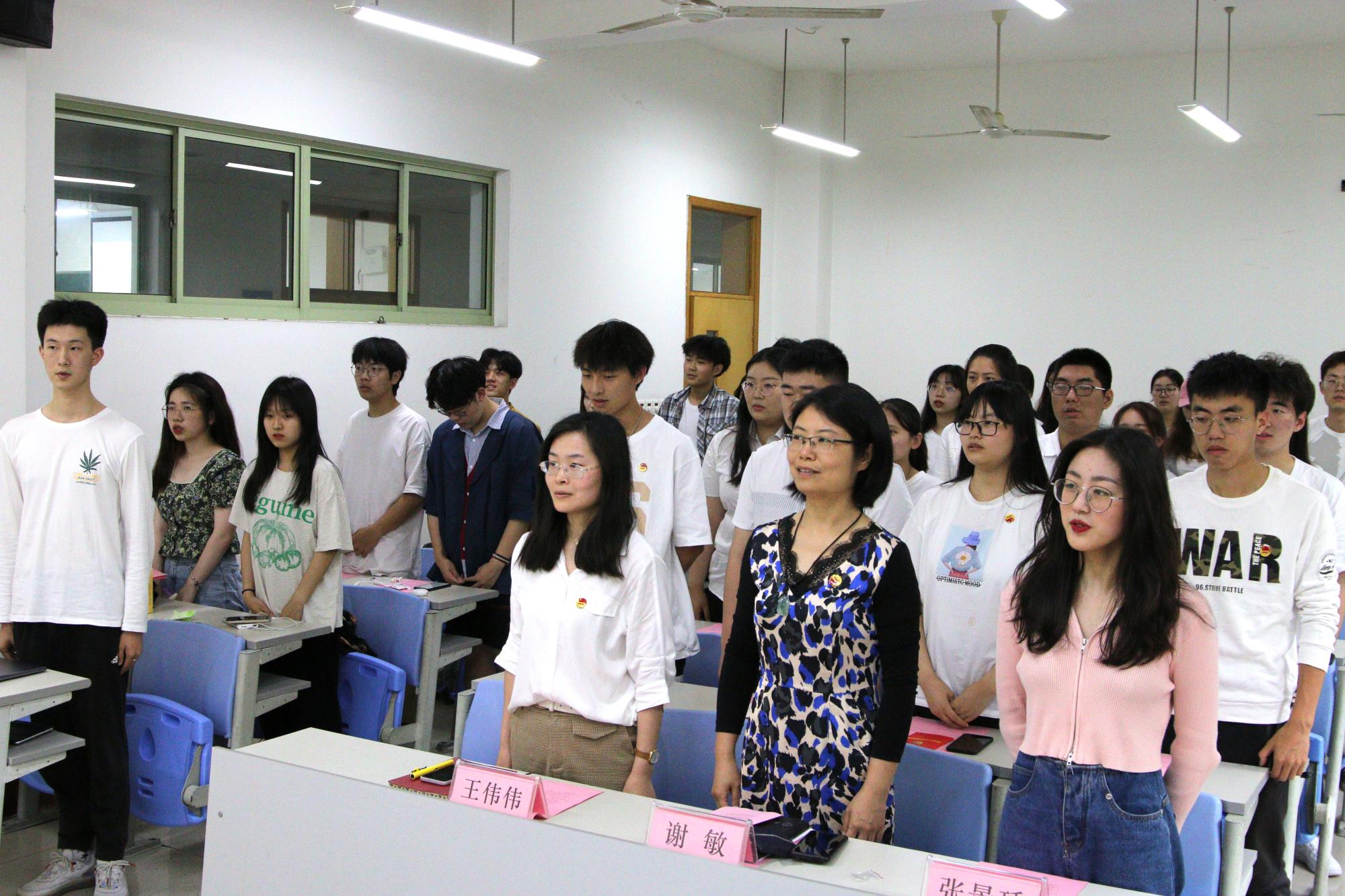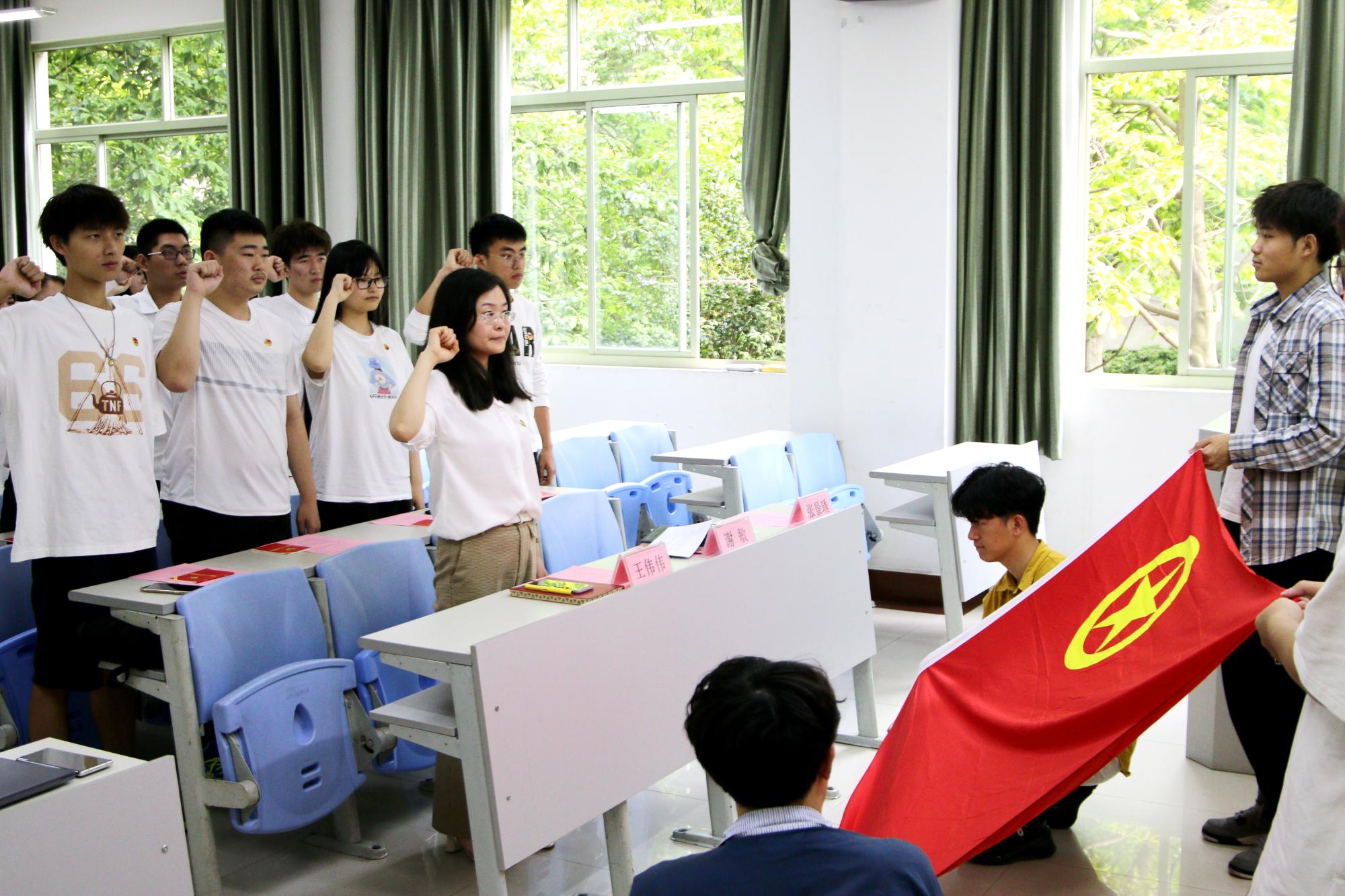 团委书记王伟伟带领全体新团员们进行入团宣誓。