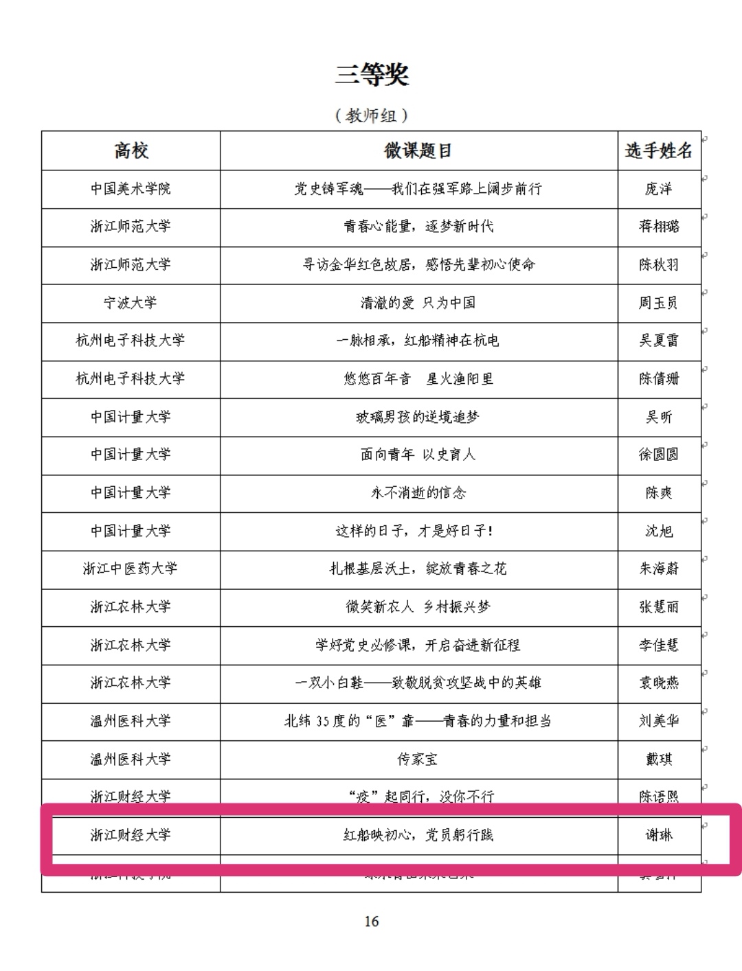 辅导员谢琳老师参加党史教育类别,喜获三等奖。