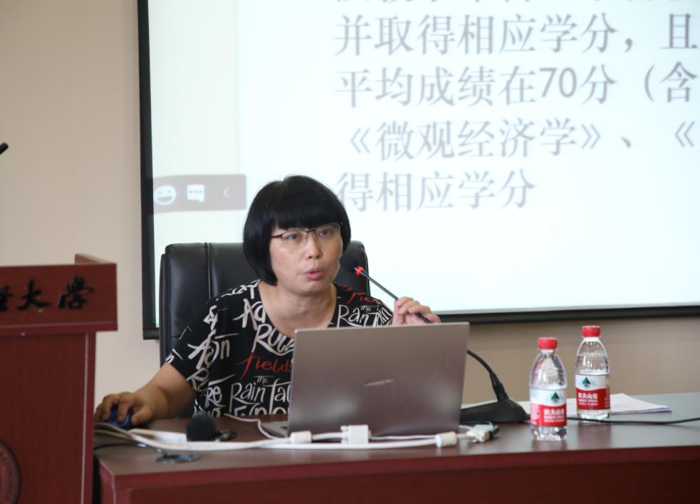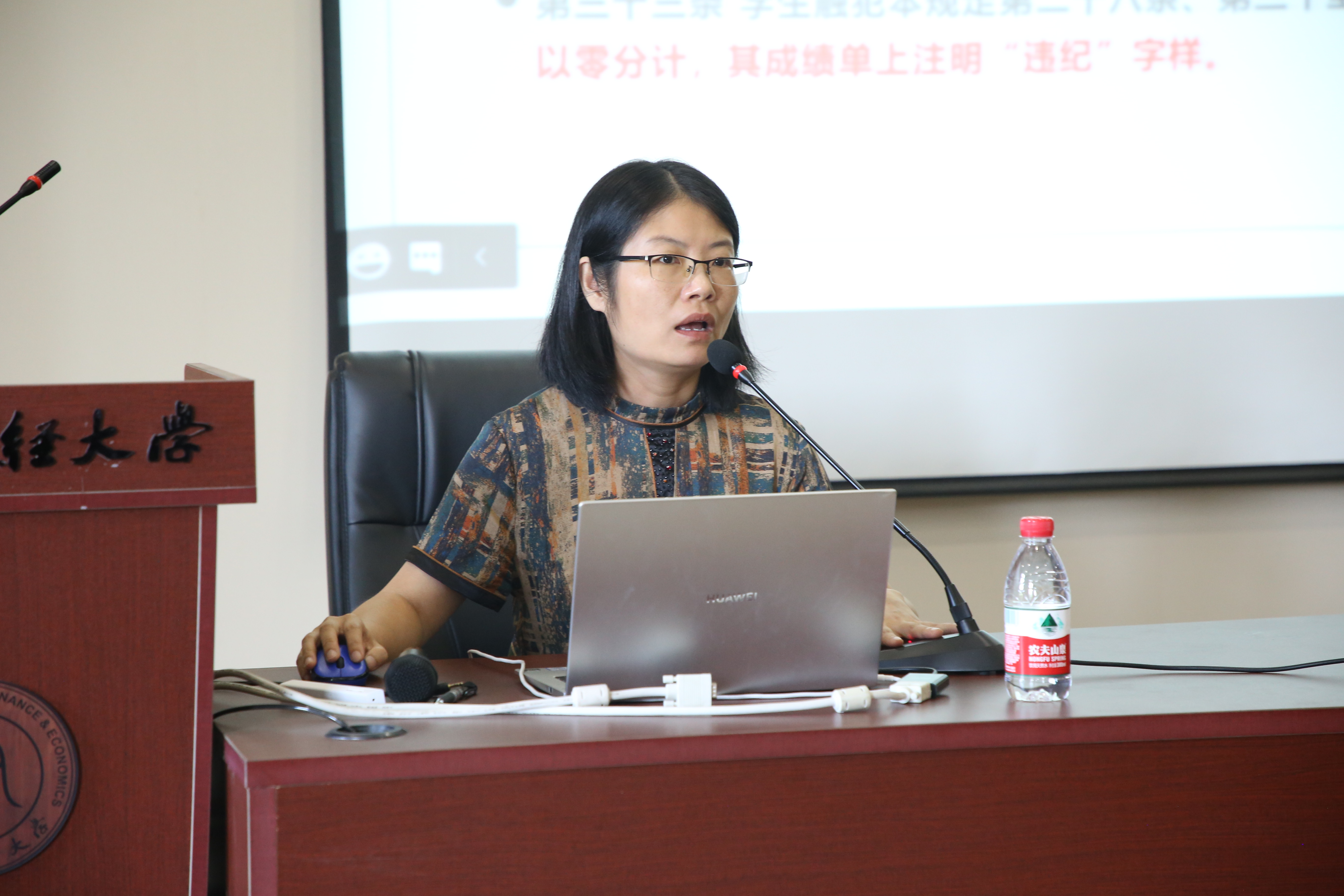 沈腊梅主任对本科生培养方案进行了详细的介绍,让同学们进一步了解到如何借助学院平台更好地发展和成长。沈主任以通俗易懂的语言使同学们了解到金融学类各个专业的培养目标和培养模式,讲解了专业准入、专业准出的内容,并督促同学们以高标准自我要求,取得优异成绩。